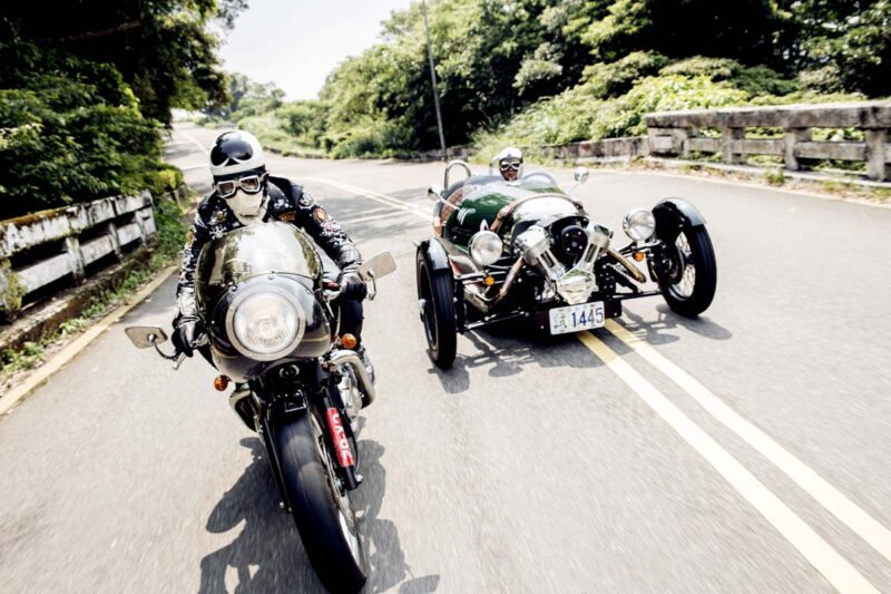 速度陶醉 Morgan 3 Wheeler Triumph Thruxton Cafe Racer這幅畫面讓人感覺有些不太真實,如果不說實在難以想像這是在台灣,當中的關鍵除了兩部罕見的英國復古車Morgan 3 Wheeler與Cafe Racer式樣的Triumph Thruxton之外…