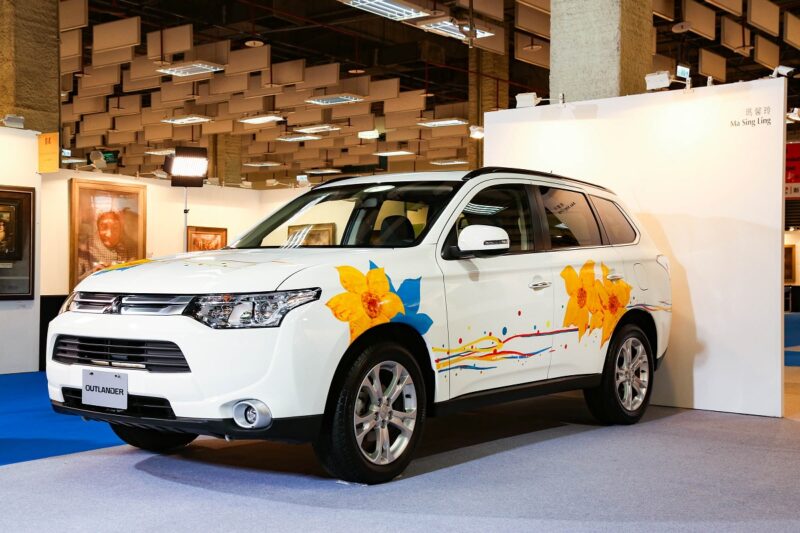 結合台灣當代藝術 Mitsubishi Outlander、Colt Plus彩繪車吸睛與台灣當代藝術結合,Mitsubishi今年特別以「汽車與藝術」為主軸,與香華天集團設立的寶勝畫廊合作,邀請旗下新銳藝術家瑪馨玲與陳誼欣以Outlander以及Colt Plus車體為畫布