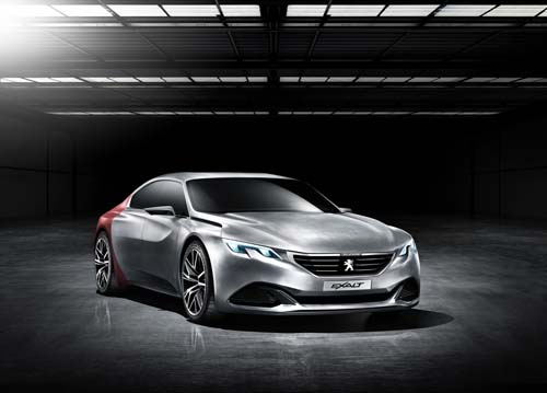 法蘭西赤尾獅 Peugeot Exalt Concept以4700mm的車長定位在五門掀背跑房車型的Exalt,設計靈感取自Onyx概念車,尤其車頭前視覺的倒梯形六角水箱護罩並嵌入斗大的獅徽,以及特殊的頭燈組,加上跑格化的下氣壩設計,在在表露EXALT不可