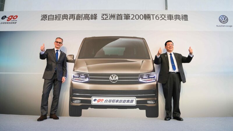 200部T6交車典禮!台灣福斯商旅與e-go租車攜手寫紀錄台灣福斯商旅歡慶T6上市且贏得「亞洲首筆大規模企業訂單」,特於今日與e-go台灣租車旅遊集團盛大舉辦交車儀式,運用23輛T6組成e-go字樣