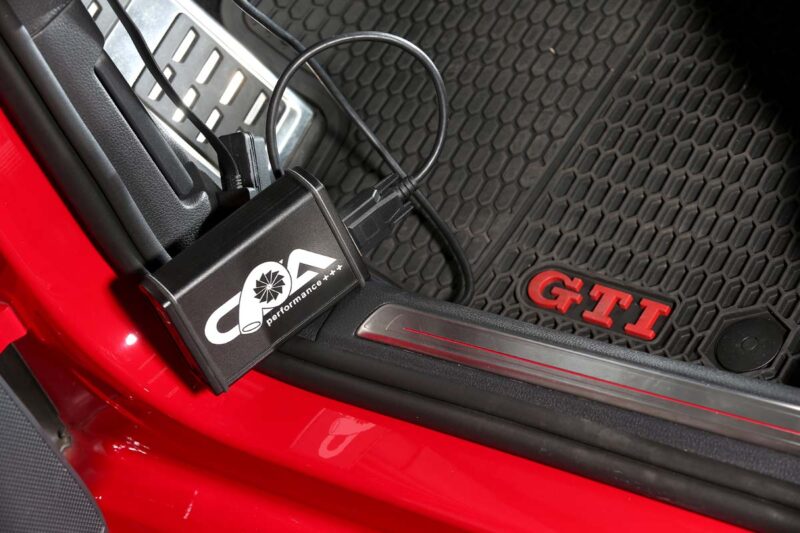 Golf GTI MK7 調校一下 就直達400whp++!(下)改為Siemens品牌的ECU後,不管是電腦的改寫或是DSG變速箱的程式修改,只需要連接車內的OBD II就能傳輸,讓這台VW Golf GTI整體的效率大幅提昇
