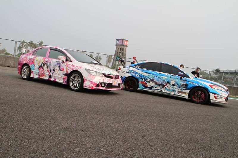 OP頑車聚-痛車組選美冠軍-Ford Mondeo初音未來號這種在日本稱之為「痛車」的玩車風格,整部車貼起來的費用可不比上一組緊繃的改裝品低,但由於能隨時將喜愛的動漫人物帶著走,因此成為忠實動漫迷展現個人喜好的最佳平台。而這兩部痛車的改造都相