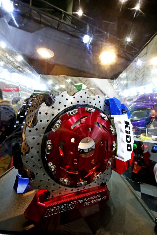 全新散熱中心盤 KIDDO多活塞卡鉗去年AMPA Show中KIDDO就已經展出全新設計的中心盤,透過特殊的切削角度,讓車輛在行駛時可更快速的將熱能及粉塵排出,降低激烈操駕時影響煞車性能的各種因素,除了這個之外也把自家的