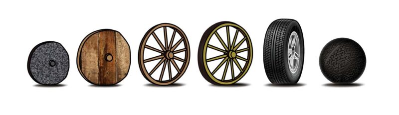 「運輸」、「乘坐」、「舒適」、「性能」,這4大要求大概就可以說明輪胎的進化理由。不用小編特別說明,在卡通上都能看到原始人除了搭乘恐龍以外,用來移動的工具都是用石頭當作輪胎,一般來說這都是