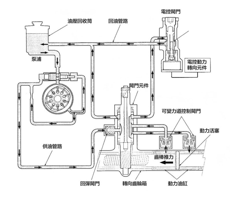 汽車轉向結構從油壓改到電動,這些操控感受的差異是?利用曲軸推動油壓泵浦,將壓力傳導至閥門,產生輔助轉向軸的旋轉力道,需要油壓泵浦、驅動滑輪及皮帶、管路、液壓油回收筒等多樣零件組成。