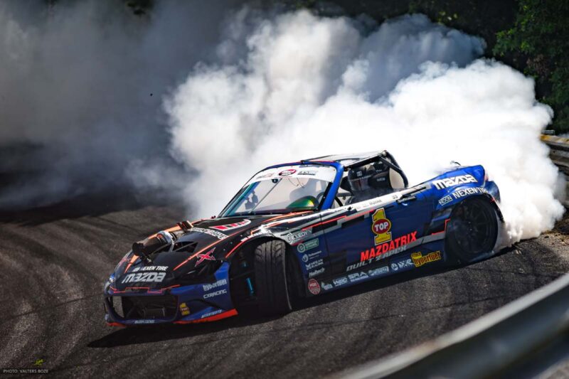 雖然都是馬自達系統 不過只保留MX-5外觀而已啊!!對於擁有13年豐富賽事經驗的kyle Mohan則是瘋狂地將擁有超過1000hp馬力的三轉子引擎塞入Mazda MX-5,對於美國最高殿堂的Formula Drift來說或許只是剛好而已。動力方面使用3轉子20B引擎,加上Turbonetics特別訂製