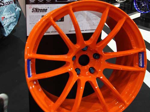 一提到了RAYS相信除了會想到重量極輕的鍛造輪圈之外,成功以大膽而誇張的配色手法造成話題的Gram Lights系列,也讓人印象極為深刻,為了持續減重以符合大尺寸輪圈所需,今年更是展出歐系車專用G25(單顆28000元起)、TE37 C1與多款即將量產的概念框。