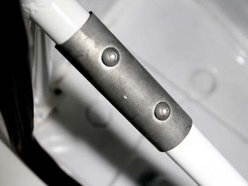 | 所有管對管的接點其套管不僅需符合副管徑與強度,還需利用8mm螺絲與多點來固定,而螺絲固定的角度也必需各自兩兩成九十度垂直以確保其強度。 |