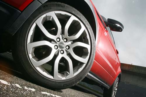 | Evoque Coupe Dynamic+車款標配245/45R20大尺碼低扁平比胎圈,提供優異的循跡性與抓地力。 |