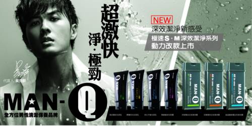 Man-Q全新 SM極勁深效 潔顏系列,融合男性基礎保養概念推出全新一代產品,以時尚黑加上大膽玩色作為產品設計主軸,產品成分結合東西方植物草本精華及目前最火的生技保養元素,能深層快速洗淨油脂髒汙,清潔同時調理膚質。S系列多重合一讓你從頭到腳快速潔淨頭髮、身體和臉部清潔一次完成。
