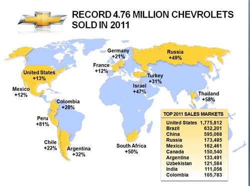 | 美國Chevrolet是GM罕見的全球化品牌,無論美國、歐市或者中國都有一席之地,其中美國是最大銷售市場,去(2011)年一年賣達177萬5812部,Chevrolet Cruze是最暢賣車款,今年2月,另一款微型轎車Chevrolet Sonic也賣得相當不錯,銷量還贏過Ford Fiesta。 |