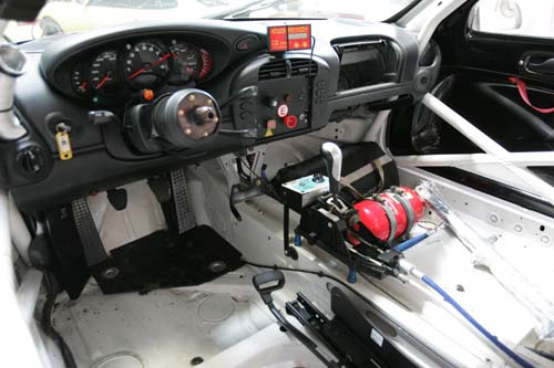 | 標準廠車化內裝除了保留時速與轉速等儀錶,中控台絕大部分功能也改為斷電開關與自動滅火啟動鈕,以有效應付緊急狀況。 |