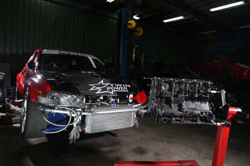 擅長打造高性能巨獸的Twin Power,為了成功挑戰珠海賽車場所舉辦的泛珠三角超級賽車節,由台灣團隊所打造的APM Racing LanEVO VIII經過去年累積測試經驗後,這回特別在O.T.G.P.首戰前進行車輛最後調校,雖然大鵬灣賽道在規模上明顯小於珠海賽車場,但是利用初步的測試數據後,不僅能夠有助於六月份珠海正賽,對於往後參與國內賽事同樣也可更有依據。以目前中型賽道設定來看,動力輸出雖然可以略降低至500hp左右以減輕引擎負擔,不過南台灣偏高的氣溫也需要進行冷卻系統升級,同樣的對於煞車系統的考驗依然不能馬虎,因此特別配置的賽車專用煞車系統也可作為提前測試