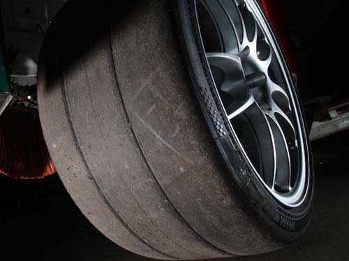| 目前國內賽場上相當常見的「有紋熱熔胎」也將作為APM Racing LanEVOVIII在大鵬灣賽道調校的測試胎。 |
