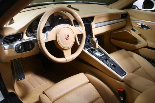 內裝陳設上的改變是911的另一項重要變革,過去的911車艙空間以注重實用機能為優先考量,雖然有清晰易讀的儀錶,優異的人體工學設計,但其實談不上華麗與設計感,當然Porsche Exclusive提供買家非常多樣的選用配備與材質,但仍無法變更車輛的基本設計。我們可以把過去911的車艙解釋為注重駕駛機能的斯巴達式設計,但這樣的設計在面對新世代的競爭對手時難免顯得吃力,尤其是眾家車廠現在都試著讓跑車變好開、變舒適的情勢下,老911的斯巴達風並不見得吃得開。雖然Cayenne與Panamera的出現引來了不少衛道者的批評,不過Porsche倒是從這兩部車的研發當中取得了不少過去缺乏的元素與思維,新世代的911車艙就可以看到一些來自Panamera的影子,例如號稱由Carrera GT與918 Spyder等超級跑車取材而來的上昇式中央鞍座,而更為精緻的細節與用料更是大幅提昇了車艙內的質感。