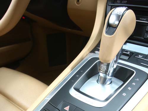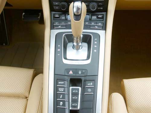| 多數與操控相關的控制開關都集中在排檔後方,中央附上鍍鉻邊緣的則是天窗控制按鍵,Boxster的車篷開關也裝在這裡。 |