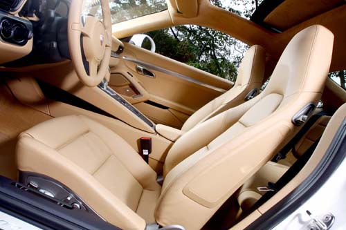 車上的駕駛人與乘客接觸時間最長的部分莫過於座椅與方向盤,911的座椅則是讓人感到最神奇的一部分。相對於其他跑車,911的座椅造型其實頗為平淡,沒有張牙舞爪吞噬駕駛人的誇張外觀,除了一體式的頭枕外,似乎沒什麼太值得說嘴的部分,雖然看來普通,但只要一坐進這張椅子、調整好姿勢,優異的乘坐感幾乎讓人很難挑剔有所不足的部分。雖然911的重心極低,但上車時不會讓人有跌坐到地上的感覺,腰部與大腿兩側的支撐性十分良好,恰到好處的造型不會讓人得勉強塞進座椅裡,肩部的支撐則是最微妙的部分,恰到好處的弧度剛好貼住肩膀,但並不會妨礙手部的動作。