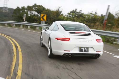 在市區取車之後,驅車直奔郊區道路,雖然我們早已知道911應付一般日常通勤沒有任何障礙,不過任何人都明白,駕駛911在彎道上奔馳才更能展現出這部車的迷人之處,畢竟所有人對跑車的期望就是如此,能在市區游走,或是在節能減碳方面有所斬獲,都只是附加價值而已。快速地進入山區道路,911 Carrera S的反應猶如突然被喚醒,先前早已熟知911的雙面性格,而此刻它正向我們展現出跑車化的一面,敏銳的入彎反應喚回了在美國測試跑道上試駕的記憶,當駕駛人以閒散的速度駕駛911時,911會回報以輕盈柔順的反應,若是進入戰鬥狀態,駕駛人還不必手動調整PASM模式,也無需啟動跑車計時套件,它自然會進入備戰狀態。