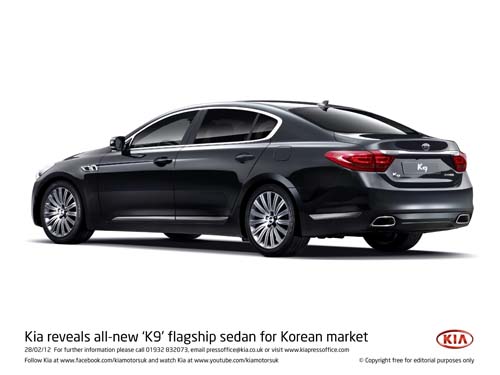 日前Kia發佈了代號為「KH」的新一代旗艦房車,在韓國則被稱為K9,這款被定位為高科技智慧房車的旗艦車款,在造型上採用洗鍊的線條與金屬元素點綴,營造出中大型房車的氣派感,而相關的動力數據、配備原廠則尚未詳細說明,僅宣佈預計在今年下半年度將會對外展出實車,並繼承先前Kia車廠在韓國國內K5、K7等K系列車款之延續。K9的誕生,被Kia視為一重要的里程碑,雖然目前原廠並未對K9內裝與配備透露太多的細節,但原廠宣稱K9將結合Kia最新的科技與設備,不但可提高K9的駕駛性能和安全性,更能符合K9高科技智慧旗艦房車的產品定位。在外觀上,K9擁有氣派的造型,而最引人注目的莫過於它獨特的水箱護罩,在與LED大燈組相互搭配下,正面即給人一種不怒而威的沉穩氣質。此外,K9採用車身線條刻劃出洗練的質感,流線的輪廓相信也讓K9擁有相當不錯的風阻表現,而葉子板氣孔與窗框鑲嵌上鍍鉻飾條後,更為其質感加分不少,在這些豪華造型的設計和元素組合下,K9也成為一部不折不扣的豪華房車。