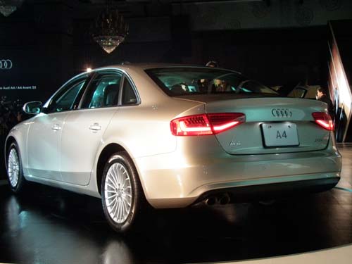 向來是Audi產品車系中重要分子的A4,歷經了40年、8個世代的演化,2011年10月編號第一千萬部的A4下線,更締造了A4車系的生產里程碑。2011年10月的小改款除了讓A4更符合近期Audi產品設計走向,同時搭配節能的動力系統,以強化產品競爭力。台灣總代理台灣奧迪汽車於2012年3月正式導入房車與旅行車兩種車型,包含1.8 TFSI、2.0 TFSI與2.0 TDI等3款動力,與A4 1.8 TFSI、2.0 TDI、2.0 TFSI、2.0 TFSI Quattro等4種等級,售價落在178萬~233萬之間。本次A4小改款中,最顯著的改變在於將原有的倒梯形水箱護罩改為單體式六角盾形水箱護罩,以全新設計的頭燈造型與轉折線條的LED晝行燈,則勾勒出更具年輕動感的視覺呈現。此外小改款A4也利用線條折線,如水箱護罩飾條、保險桿折線,以及霧燈造型與飾板裝飾等,讓車頭更顯年輕的同時也保有氣派。車尾部分,小改款後尾燈輪廓與頭燈相仿,同時亦採用LED導光設計,增添科技感。更為凸出的鴨尾設計及新增折線的保桿,則讓A4車尾曲線更趨飽滿。