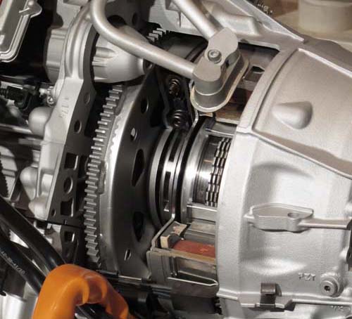 | 可輸出55匹馬力的電動馬達被安置在變速箱裡頭的前端,可直接推動變速箱而產生前進的動力。 |