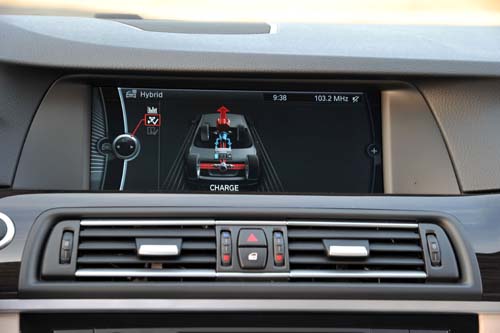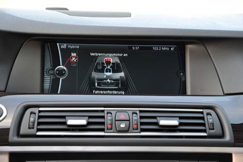 | BMW特別為ActiveHybrid 5設計了專屬的頁面,可直接觀看引擎與電力系統的運作狀態。 |