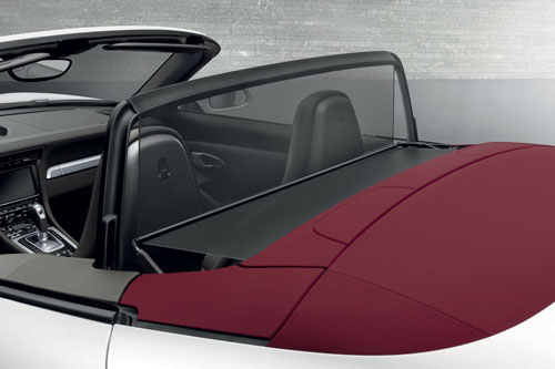 911 Carrera Cabriolet 的另一項創新功能是內建的電動迴風防護網。現在,安裝及卸下的動作已成為過去,全新的迴風防護網附接至一個 U 形張力托架,收起時可完全整合至車尾區域,因而不會 侵佔到後座的可用空間。按下按鈕後,此托架即可在兩秒鐘之內展開一張防護網,並由前座扶手後方的第二個可移動式轉向托架依直角方向拉緊。迴風防護網可在每小時高達 120 公里的車速下展開。其作用與前代車型相同,可將氣流擾動降至極低的程度並將敞篷駕駛時的風切聲減至最小。展開的迴風防護網可在軟篷車頂關閉時自動收起。