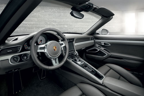 敞篷型 911 Carrera 車系的內裝配備大致上沿襲硬頂車型的內裝概念。同樣的,設計元素的核心在於向前抬升的中央鞍座。它可讓駕駛和前排乘客的空間更緊密融合,進而改善人體工學效率。全新的操控概念可使車輛的核心功能控制更加精簡且直覺化。全新 Cabriolet 的後座也可提供更大的舒適性。例如,安裝長度較短的全新防翻滾保護系統提供比前代車型更多的腿部空間。不同於全新的911 Carrera 硬頂車型,後車窗可電動降下,並標準配備了後方停車測距輔助系統 (ParkAssist)。