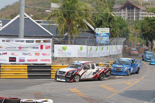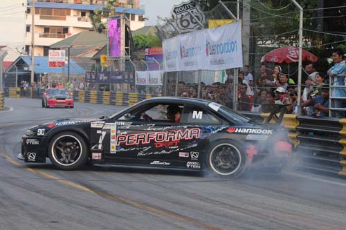 Super Production組則大多是以當地國產製造的日系小車為主,像是有豐田Vitz/Yaris/Vios、Honda Fit與Ford Fiesta等,每部車都是全車拆空輔以防滾籠強化,跑起來照樣虎虎生風!另外還有一組更具新鮮感的泰國貨卡錦標賽組(Super Pickup Thailand Championship),在當地也是相當受到車迷喜愛,各車隊間的年度積分競爭更是激烈。賽事空檔的午間表演則是由ptt贊助的甩尾廠隊(ptt Performa Drift Team)六人小組擔當,這支飄移廠隊目前在Formula D亞洲賽事中頗具盛名且締造了亮眼佳績,因此表演起來當然是讓現場觀眾大呼過癮,看完泰國賽車節今年整場活動,希望將來國內也能舉辦類似的街道賽嘉年華活動。