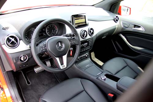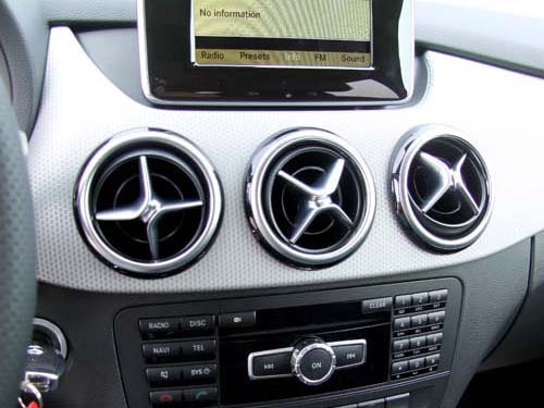 除了小車大空間的驚喜之外,在內裝鋪陳上New B Class同樣走向年輕化,三幅式多功能方向盤、大面積中控台飾板,加上宛如獨特的空調出風口,所營造的運動氛圍極為時尚年輕,不過眼尖的讀者應該會發現中控上方的螢幕造型似乎有些眼熟,雖然不知原始發想的設計概念,但猛一看絕對會直接聯想到時下所流行的i Pad。為了讓車室空間感能夠更為明亮與寬敞,在B200車系中標配的全景式玻璃天窗可讓座艙乘客隨時享受充足的日光浴。為了讓整體操控感能夠更為精進並且降低車輛重心,原廠雖然刻意降低車身高度與前座座椅離地距離,不過對於實際駕馭時並不會影響B Class原有的視野與寬敞感,而後座方面相當寬敞的膝部空間也能讓後座乘客享有絕佳乘坐舒適性。三幅式方向盤搭配簡潔的中控台鋪陳手法,實際所營造的整體內裝氛圍更顯年輕化。