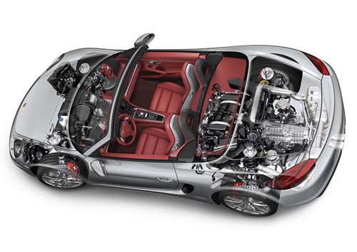 我們可以看到Boxster全新的外觀與內裝設計,然而真正造就這部車令人回味無窮的表現則是隱藏在表面下的科技,且讓我們就透視圖簡單分析。