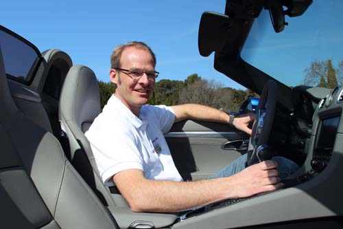 | 測試中的秘密武器 我們在試駕搭載手排變速箱的Boxster S時發現了有趣的現象,在降檔時引擎會自動補油以配合轉速,我們向變速箱開發總監Axel Weyland詢問的結果,這是Porsche已經接近完成的同步轉速匹配裝置,不過目前尚未正式發表,Weyland表示有了這套裝置,可以免去駕駛者做跟趾與雙重離合器的動作,不過在PDK大行其道的情況下,這套裝置大概也只會默默出現在配備清單上吧? |