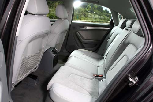 相較於其他3款車型的前置引擎、後輪驅動配置,A4 2.0 TFSI不僅採用唯一的前置引擎、前輪驅動配置,同時也是4車當中唯一擁有後座分離式椅背傾倒功能的車款。也因此,A4能在車主臨時有額外載物需求時,以4車唯一的後座分離式椅背傾倒功能,提供較其他3車更加全面的載物機能。A4不僅擁有4車最佳的4701mm車長,其2808mm的軸距長度也僅小輸328i的2810mm、在4車當中排名第2。但略顯可惜的是這項數據優勢並未能完全反映在乘坐空間表現上。即便後座乘坐長度的數據達77cm,但實際測量後座膝部空間(約2.1個拳頭)也僅小勝C200(2個拳頭)約1指幅而已,至於後座頭部空間則同為4指幅。在不傾倒後座椅背的前提下,A4的行李廂空間不僅設計得相當平整,標準置物容積也已經與328i同為排名第1的480公升,搭配4車唯一、獨家的後座分離式椅背傾倒功能,更能將最大載物容量一舉擴大至962L的優異水準。