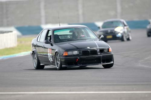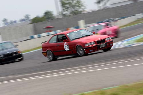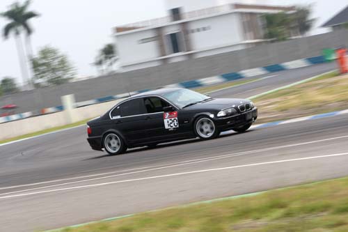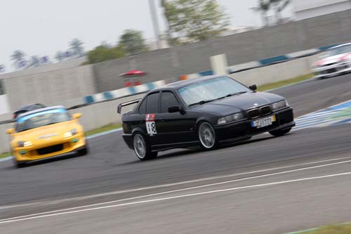 | 季軍車號:124 車隊:RUFF 車型:BMW E36 328 姓名:洪文玫單圈成績:2:06.017 最大馬力:240hp 胎圈:Yokohama AD08 由於車輛引擎在開賽前發生第六缸點火故障,因此動力輸出上僅能以五缸力拼六缸,戰鬥力明顯稍微吃了悶虧,為了讓底盤能夠更為穩定以利車尾動態掌控,因此前輪採用4度,後輪則由原本2.5度緊急拉到4度,不過半熱熔胎的抓地力明顯不足,即使賽前特別將胎壓降低至18磅,幾圈下來胎溫立刻讓胎壓攀升至35磅,下次動力補強後再來力拼FR冠軍。 |