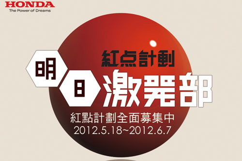 關於未來你有多少想像?一個「紅點計畫」,就是改變世界的觀點。馬上加入Honda明日激發部的「紅點計畫」,徹底激發你的大腦!使用「紅點計劃」手機APP或電腦上傳你的激發靈感,就有機會贏得2012 All New CIVIC!紅點計畫詳情請上http://idept.honda-taiwan.com.tw查詢。