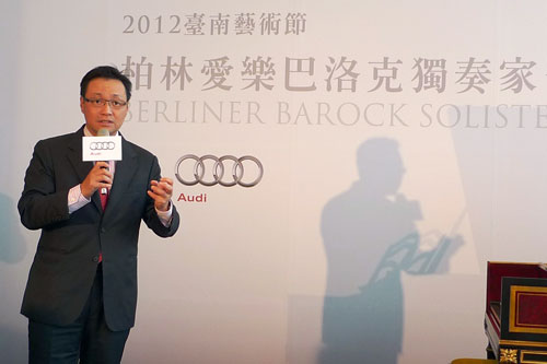 台灣奧迪汽車邱山祥總裁表示:「臺南府城是個充滿文化氣息的美麗城市,因此繼三月份熱情贊助「IL DIVO 美聲男伶」億載金城星光演唱會之後,我們十分榮幸能夠再度共襄盛舉參與2012臺南藝術節活動,屆時「柏林愛樂巴洛克獨奏家合奏團」將為南台灣廣大樂迷們帶來世界級的高水準演出,期盼大家都能細細品味、盡情感受其精湛無比的古典樂演奏魅力!」Audi汽車身為國內豪華房車領導品牌,對於推廣與贊助國內藝文活動一向是不遺餘力,未來台灣奧迪汽車除了將持續以實際行動關注國內的藝文發展並贊助相關展演活動之外,更希望帶給廣大樂迷們最精彩絕倫的音樂盛宴,充分展現出Audi汽車深耕台灣頂級豪華房車市場的努力與用心!