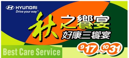 本次三陽現代汽車準備了貼心健檢宴、超值商品宴、鈑噴優惠宴好康三饗宴活動,實施一連串的安全檢查及好康超值。詳情請洽各大服務廠。