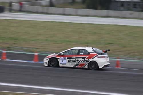 | Buddy Club-aai 91號車手陳俊杉今年所採用的Civic FN2廠車可說是全場最受矚目的焦點,不僅強勢取得排位賽最速單圈成績,兩回合Super 2000 Group決賽更是拿下雙料冠軍。 |