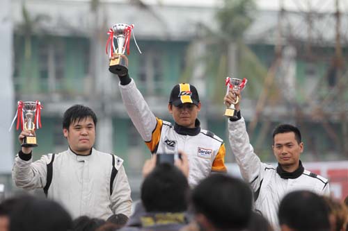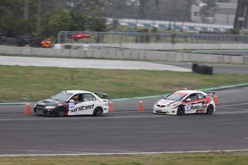 然而週日分別在上午與下午所舉辦的兩回合10圈激烈對決中,似乎以Buddy Club-aai陳俊杉所駕駛的Civic FN2廠車最受矚目,雖然在起跑瞬間礙於馬力劣勢馬上就被廖志賢的Subaru GRB拉出五個車身以上的距離,不過隨後在水塔灣時所有起跑的優勢立刻歸零,極為穩定的單圈表現不僅絲毫沒有任何性能衰退現象,最速單圈更是跑出1:51.018,最終就以20:48.429率先衝線。至於在下午第二回合賽中順利取得GT Group第一回合冠軍的廖志賢,比賽過程中雖然仍維持第二起跑優勢,但突然發生四輪煞車鎖死情形也被迫進站緊急維修,但最終礙於機件故障也只能提前退賽,因此GT Class冠軍則是由100號駕駛United Racing Mitsubishi EVO 8的黃中信拿下。