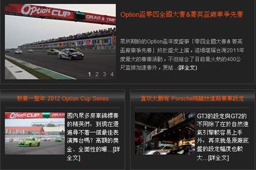 | 隨著Option Cup專屬網頁正式開張運作後,未來除了將不定期提供最新參賽規則、資料與影音等,成立至今已長達9年的Option盃相關賽事成績也將會陸續建立歷年成績表,往後對於賽事方面有任何相關資訊疑問的讀者皆可善加利用。 |