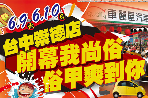 抗漲讓利 車麗屋台中崇德店開幕利多大放送