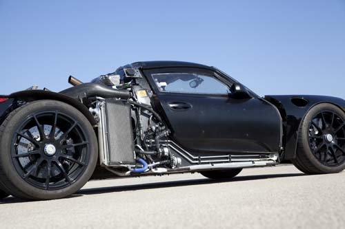 最近Porsche釋出了有關下一代超級跑車918 Spyder的部份資訊,有別於在國際車展上的光鮮亮麗,這次測試中的918 Spyder以半偽裝的方式呈現在我們面前。下一世代的Porsche超級跑車918 Spyder在董事會同意量產之後,已經正式展開量產前的測試工作,在概念車上看來太過虛幻的雙電動馬達加上V8汽油引擎的混合動力系統,目前也已經進入量產前的測試階段,而且現行測試中的系統看起來比概念車更為夢幻。