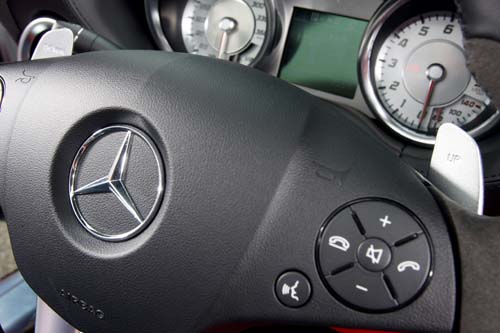 另外,此套採用3層複合編織纖維材質、並特別強化隔音隔熱需求的織布軟頂敞篷果然了得,即便在時速100km/h以上關篷駕駛時,仍能提供不同於傳統軟頂敞篷車款的出色靜肅效果,即便身懷571hp/66.3kgm的無比深厚功力,也僅需以平常對話音量即可與副手座乘員輕鬆交談。至於AMG三幅式樣Nappa/麂皮平底方向盤不僅握感絕佳,豐富的回饋路感更是令人驚艷且頗讓人讚賞。SLS AMG Roadster的長車頭與極為接近後軸的座椅設計,在轉動方向盤的同時,駕駛人的臀部與座椅後方的後軸也幾乎已經同步跟進,只要能細膩地控制油門動力輸出與方向盤的轉向角度,再加上隨伺在側監控的ESP系統,搭配駕駛人的純熟駕駛技巧,SLS AMG Roadster也絕對能回應極富感官樂趣的駕馭新體驗。