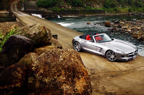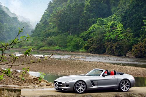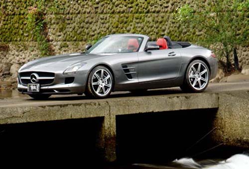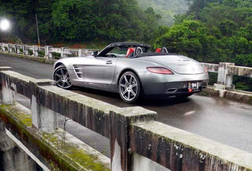 自從在2011年9月法蘭克福車展首演,並且於同年8月份搶先在國內亮相並以1425萬元起的預售價開始預接單以來,最新加入敞篷超跑家族的SLS AMG Roadster,也成為了許多車迷眼中的夢幻車庫清單中,絕對不可或缺的德系超跑代表作。與較早前引進國內的Coupe車型相當類似,SLS AMG Roadster同樣也以1950年代300 SL車系當中的Roadster古典敞篷跑車做為設計發想。除擁有與Coupe車型相同的大面積水箱護罩、大型三芒星廠徽與車身側面的鰭狀進氣口等設計特色外,最大的差異處即是全新電動軟頂敞篷設計。