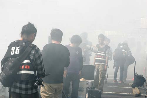 | 哈,是誰說編輯出國採訪D1很爽的,看看這現場濃煙,快中毒了啦… |