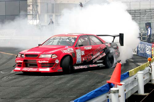 | 齊藤太吾的一千匹JZX100使用直噴式NOS系統,從其車輛中低速與甩尾過程中的濃煙程度便可看出效果。 |