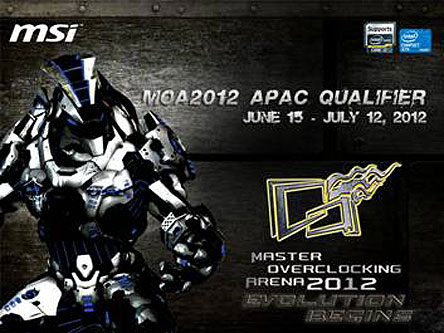 眾所矚目的MSI MOA(Master Overclocking Arena) 2012線上資格賽第三戰:亞太區資格賽,將於6月15日開放亞太區超頻好手一較高下,前四名優勝參賽者將可組隊晉級至MOA 2012全球超頻總決賽,前往台灣挑戰世界級的鋼鐵對決!