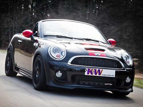 結合卡丁駕馭樂趣與雙座轎跑車設計的Mini Roadster,雖然外型設計上似乎並不容易被市場的數消費者所接受,但是更趨於純粹而原始的駕馭樂趣才是熱血玩家所追求的極致目標,為此KW提供幾款改裝懸吊選擇,首先為了降低車身高度以利低重心的操控感受,前後軸分別可降低25~50mm與30~60mm,另外可獨立調整的伸縮測阻尼設計可依駕駛喜好進行變更,包含車重、輪胎特性與車輛剛性以達到最佳化設定。
