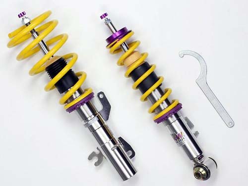 | 為了降低車身高度以利低重心的穩定操控感受,KW懸吊前後軸設計可分別降低25~50mm與30~60mm。 |