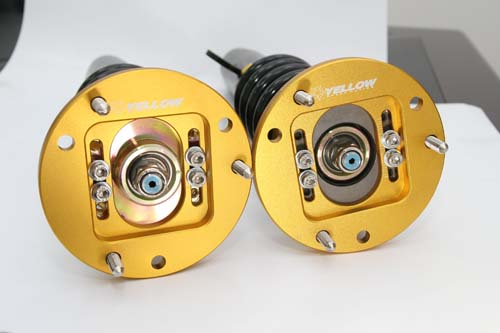 | Yellow-Speed所製造的麥花臣類型避震器上座也有魚眼式樣,且該魚眼為日本進口零件,可提供車主更自由的Camber調整空間,且為避免產生異音,並延長街道使用時的壽命,獨家開發專用緩衝墊,讓魚眼不需直接承受來自路面的衝擊。(上方未使用緩衝墊,比賽時可取下) |